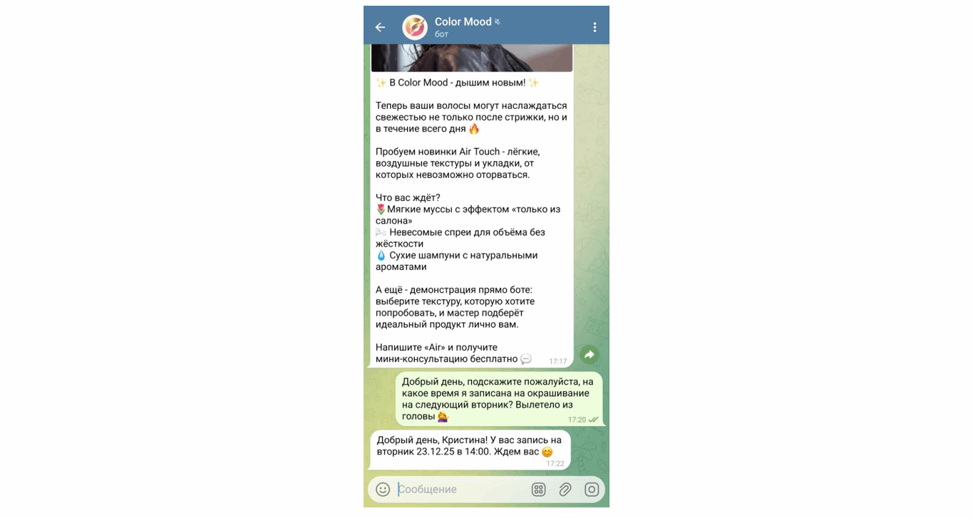 На старте модуль поддерживает Telegram, в ближайших планах - интеграция с Max и, по запросам бизнесов, с VK и другими площадками. Все общение идет через официального бота вашей компании.