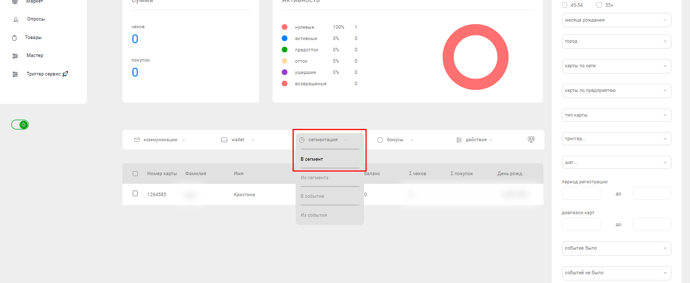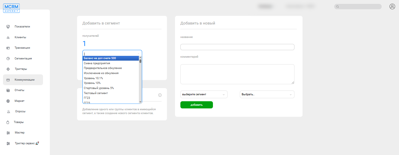 В открывшемся окне появится поле со списком всех сегментов. Отметьте тот, в который нужно добавить пользователя.